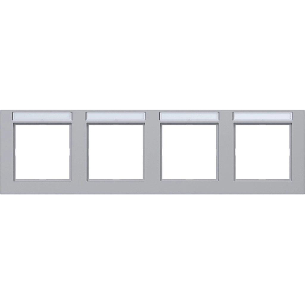 Hager Berker 4-voudig afdekraam, voor horizontale montage met tekstveld, A.1, titaan mat. Afm.: 81,5x294x10mm. Thermoplast (mat gelakt).