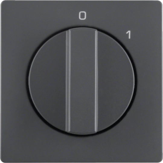 Hager Berker draaiknop met opdruk 0-1, Q1/Q3/Q7, antraciet mat. Voor de 2-polige aan/uit-draaischakelaar (3862). Excl. binnenwerk en afdekraam.