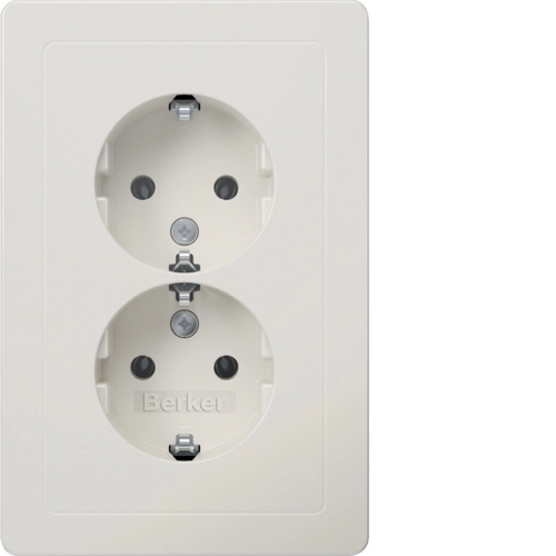 Berker stopcontact 2-voudig met randaarde en (geïntegreerd) afdekraam, Q1, wit mat. Alleen geschikt voor een 1,5-voudige (ovale) inbouwdoos.