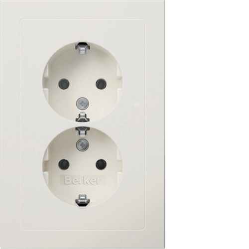 Berker stopcontact 2-voudig met randaarde en (geïntegreerd) afdekraam, Q3, wit mat. Alleen geschikt voor een 1,5-voudige (ovale) inbouwdoos.