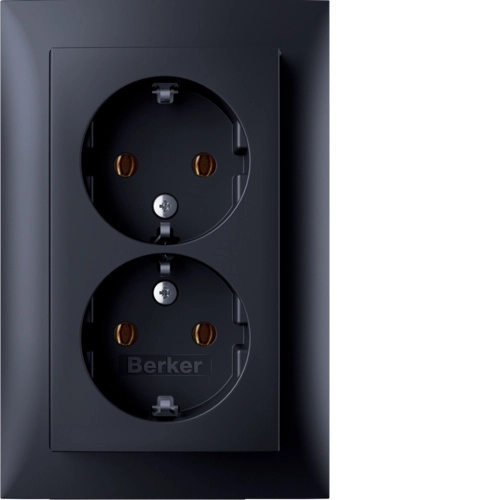 Hager Berker dubbel stopcontact met randaarde, S1, antraciet mat. Geschikt voor enkele inbouwdoos.