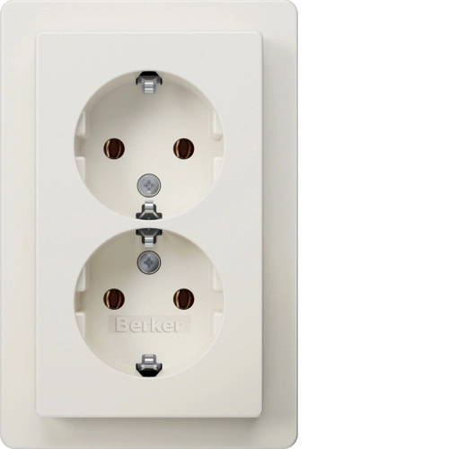 Hager Berker dubbel stopcontact met randaarde, Q1, wit mat. Geschikt voor enkele inbouwdoos.