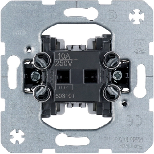 Hager Berker enkelvoudige pulsdrukker met maakcontact en twee separate meldcontacten, 10 A. Met klauwbevestiging (spreidklemmen). Excl. schakelwip en afdekraam.