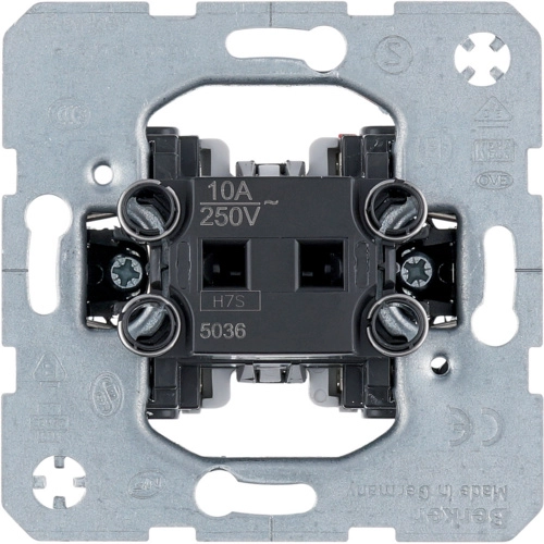 Hager Berker enkelvoudige pulsdrukker met wisselcontact (je wisselt tussen maak- en verbreekcontact), 10 A. Met klauwbevestiging (spreidklemmen). Excl. schakelwip en afdekraam.
