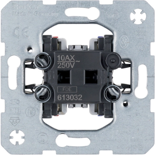 Hager Berker 2-polige uitschakelaar, niet geschikt voor wisselschakeling, 10 A. Voor het schakelen van fase en nul. Zonder klauwbevestiging (spreidklemmen). Excl. schakelwip en afdekraam.