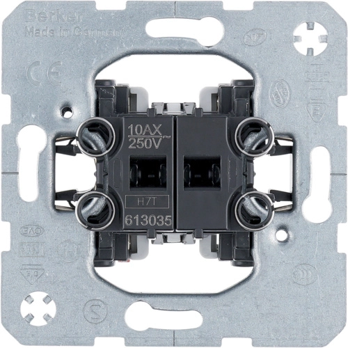 Hager Berker serieschakelaar voor het schakelen van twee afzonderlijke lichtpunten, 10 A. Niet geschikt voor wisselschakelingen. Zonder klauwbevestiging (spreidklemmen). Excl. schakelwip en afdekraam.