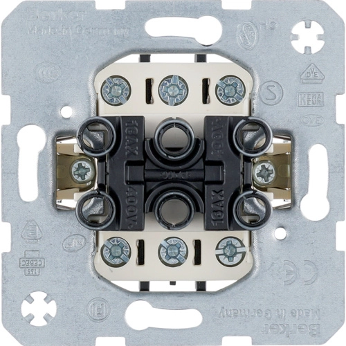 Hager Berker 3-voudige uitschakelaar, 16 A. Geschikt voor 3 onafhankelijke lichtpunten, niet geschikt voor wisselschakeling. Met klauwbevestiging (spreidklemmen). Excl. schakelwip en afdekraam.