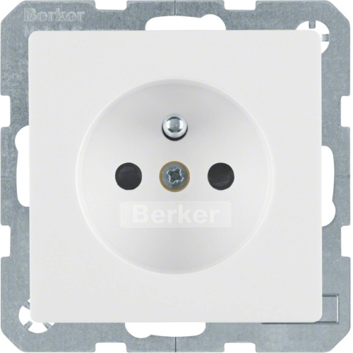 Hager Berker stopcontact met penaarde (België) en verhoogde aanraakbeveiliging, Q1/Q3/Q7, wit mat. Met klauwbevestiging/spreidklemmen. Excl. afdekraam.