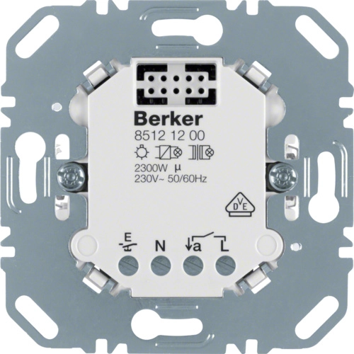 Hager Berker 1-voudige relaisschakelaar met nevenpostingang voor impulsdrukker en bewegingsmelder. Afdekbaar met 85141xxx of 85341xxx. Nuldraad vereist!