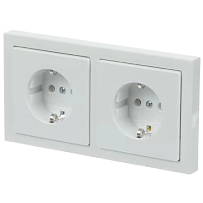 Busch-Jaeger Future Linear randaarde stopcontact, voorbedraad, 2 eenheden met afdekraam, studiowit glans. Alleen geschikt voor speciale (hollewand-)inbouwdozen (DUO-doos). Bijvoorbeeld van het merk ABB Haf de types H251 of HW252-F of van het merk Attema de types 1144 of AT1066.