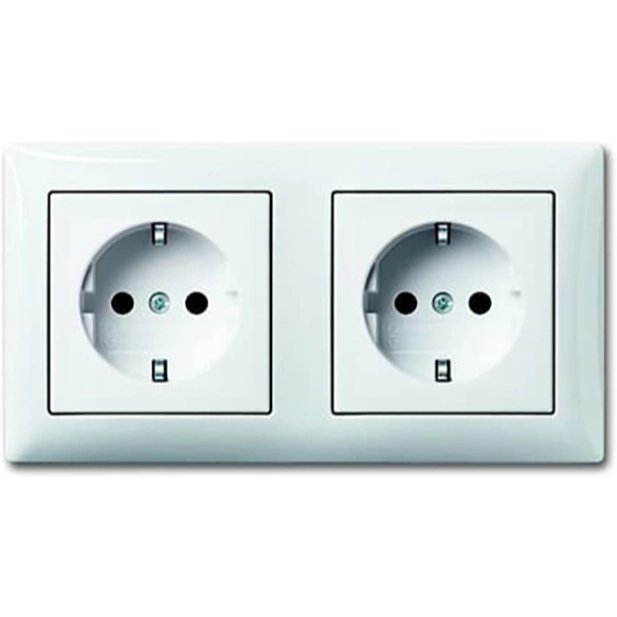 Busch-Jaeger wandcontactdoos 2-voudig randaarde voorbedraad voor duo-inbouwdoos Balance SI wit glans (20-2 EUCJ-914-503)