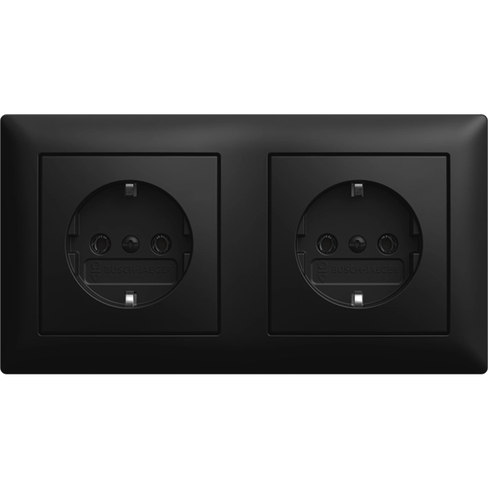 Busch-Jaeger wandcontactdoos 2-voudig randaarde voorbedraad voor duo-inbouwdoos Balance SI zwart mat (20-2 EUCJ-915-503)
