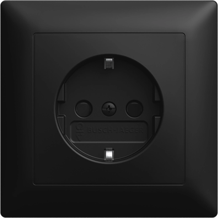 Busch-Jaeger stopcontact randaarde Safety+ (kindveilig) met spreidklemmen, Balance SI, zwart mat. Compleet met vast afdekraam, alleen voor afzonderlijke montage.