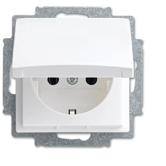 Busch-Jaeger stopcontact randaarde met klapdeksel zonder spreidklemmen, Balance SI, wit glans. Excl. afdekraam.