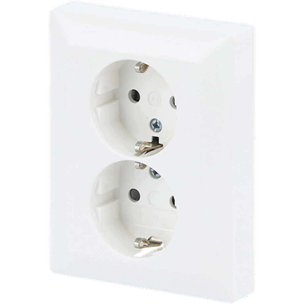 Busch-Jaeger wandcontactdoos 2-voudig randaarde kindveilig voor enkele inbouwdoos met klauwbevestiging Balance SI wit glans (202 EUJB-914)