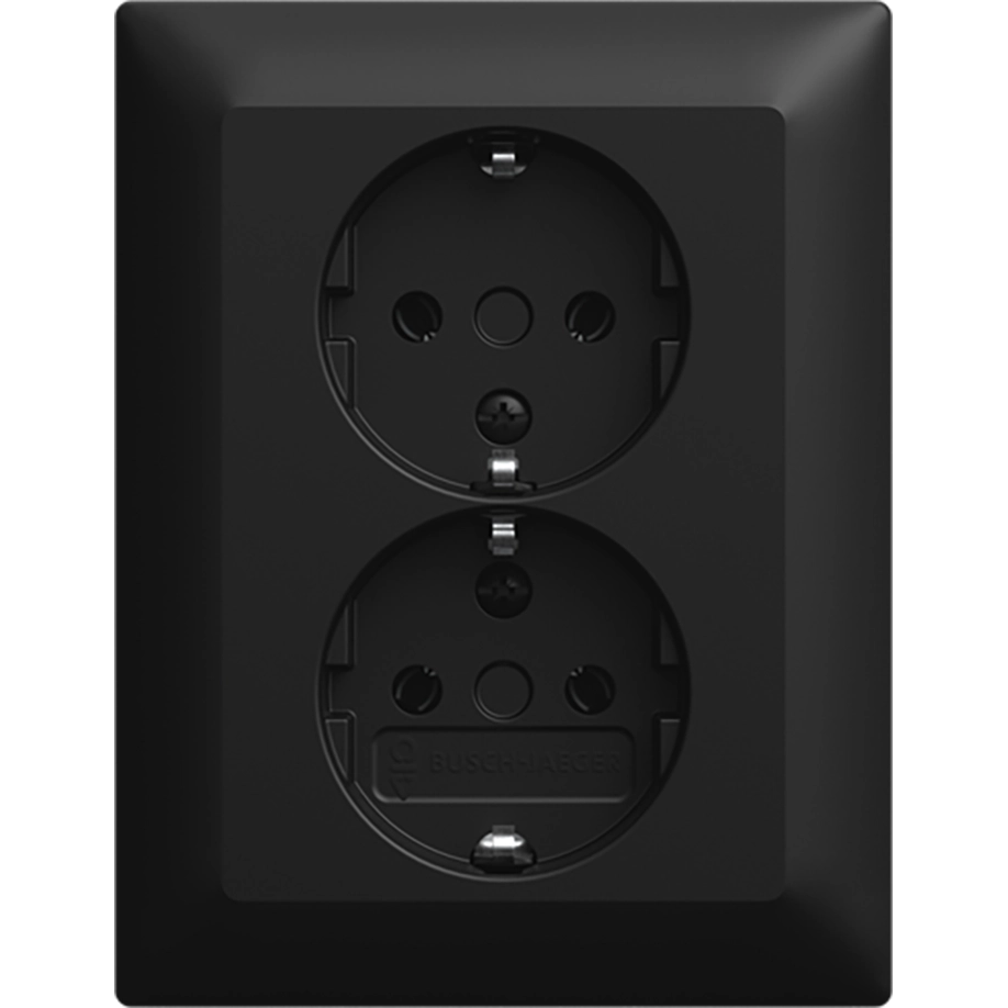 Busch-Jaeger dubbel stopcontact met randaarde, Balance SI, zwart mat. Geschikt voor enkele inbouwdoos.