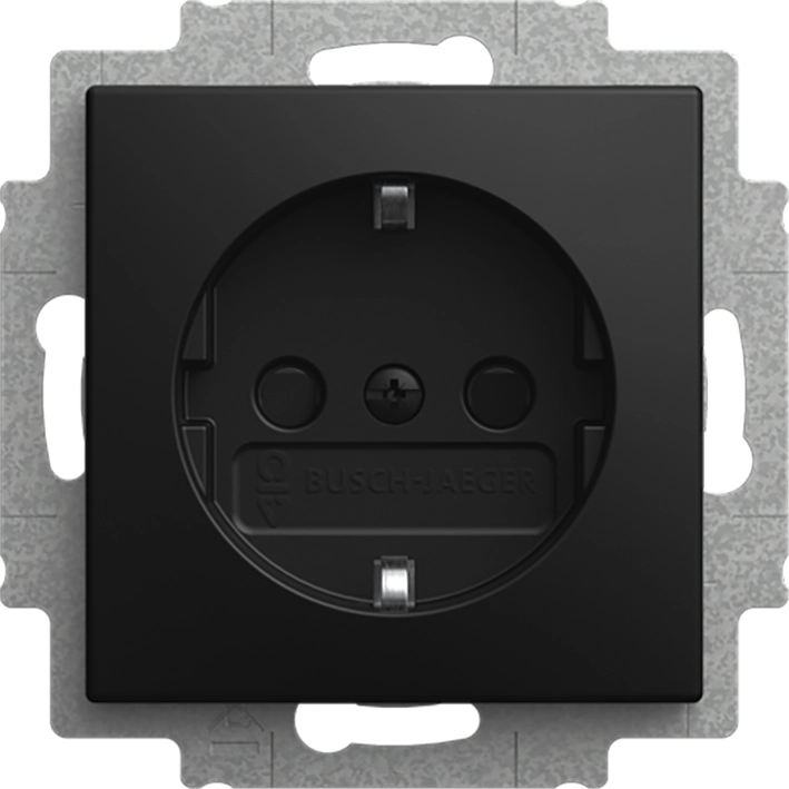 Busch-Jaeger stopcontact randaarde Safety+ (kindveilig) en met spreidklemmen, Balance SI, zwart mat. Bedrading aansluiten met schroefklemmen. Excl. afdekraam.