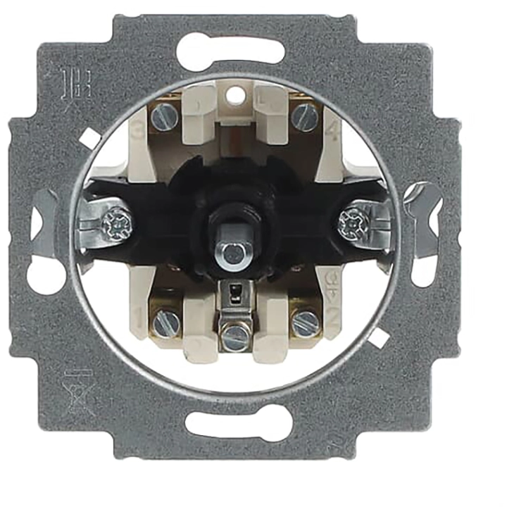 Busch-Jaeger jaloezie-draaicontact, 1-polig, 10 A. Voor het bedienen van één rolluik of jaloezie. Draaischakelaar met pulsfunctie (knop dient vast gehouden te worden). Excl. draaiknop en afdekraam.