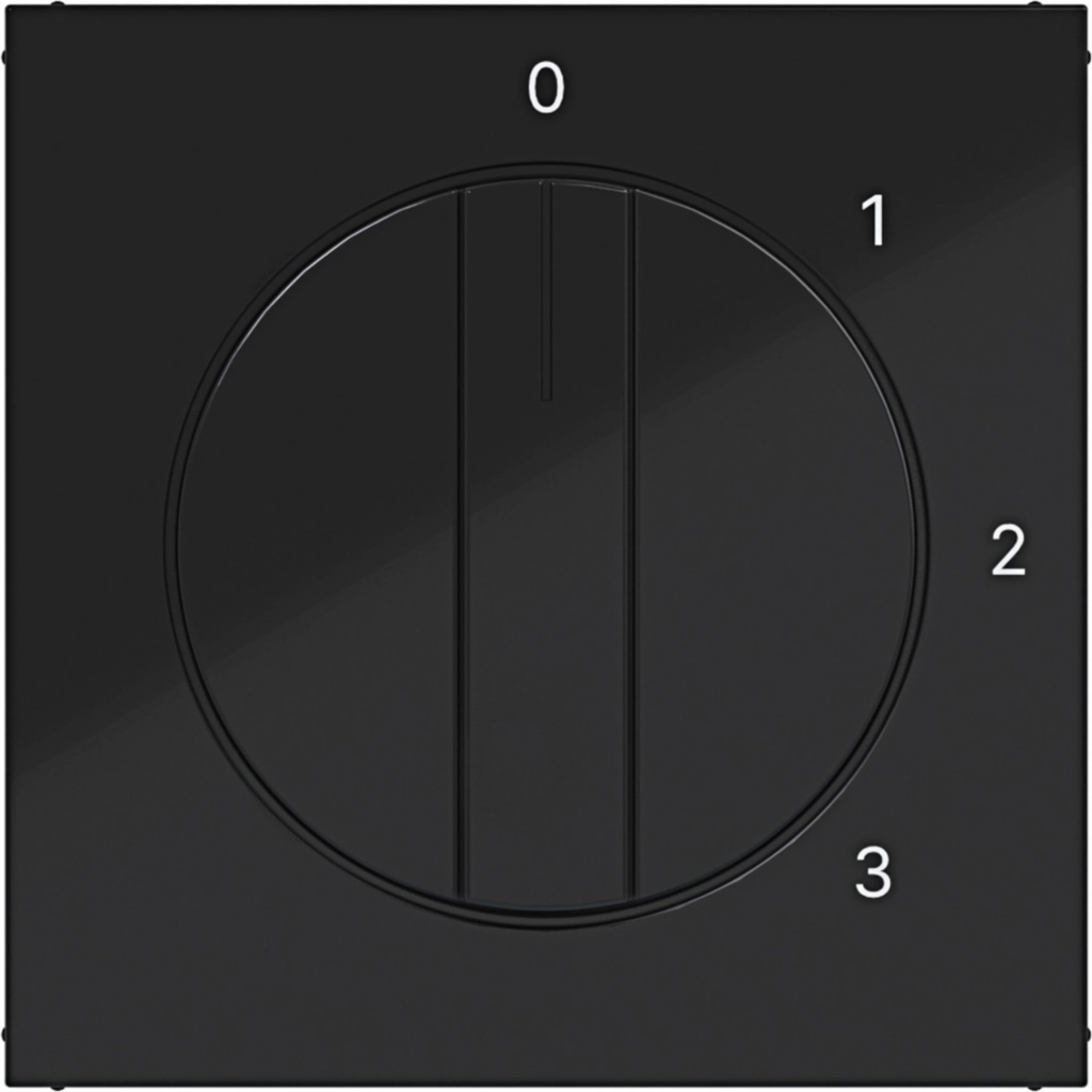 Hager Berker draaiknop met opdruk 0-1-2-3. Voor de driestandenschakelaar met 0-stand (WDE386103). Serie: A.1/A.8/C.1/C.8, nachtzwart glans. Excl. binnenwerk en afdekraam.