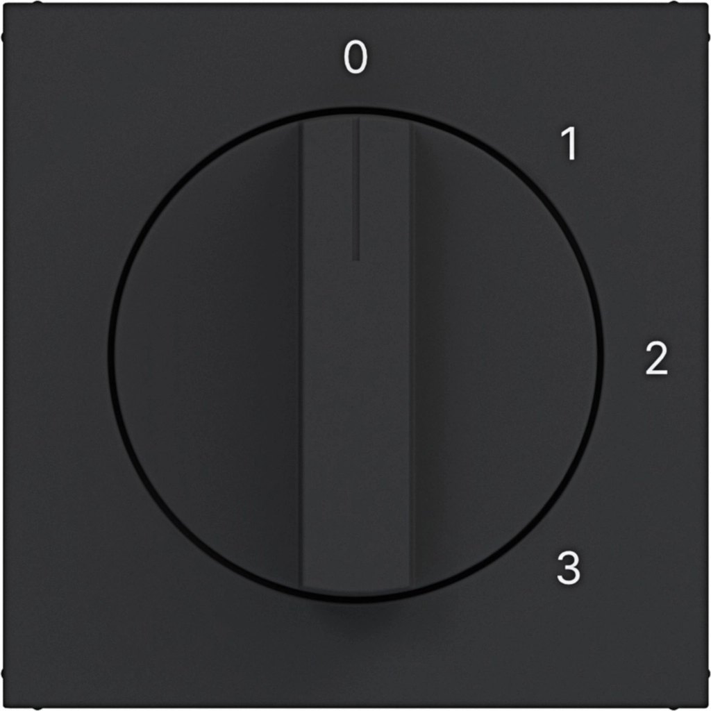 Hager Berker draaiknop met opdruk 0-1-2-3. Voor de driestandenschakelaar met 0-stand (WDE386103). Serie: A.1/A.8/C.1/C.8, nachtzwart mat. Excl. binnenwerk en afdekraam.