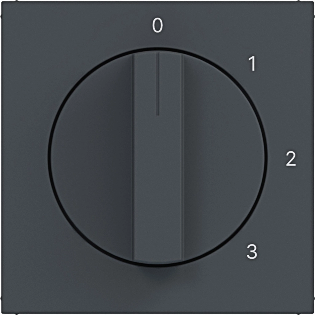 Hager Berker draaiknop met opdruk 0-1-2-3. Voor de driestandenschakelaar met 0-stand (WDE386103). Serie: A.1/A.8/C.1/C.8, antraciet mat. Excl. binnenwerk en afdekraam.