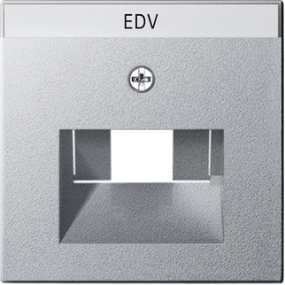 Gira centraalplaat (afdekking) met tekstkader voor RJ45 wandcontactdoos met schuine ingang, 1&2-voudig, Systeem 55, aluminium mat.