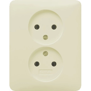 Gira 2-voudige wandcontactdoos zonder randaarde, voor een enkele inbouwdoos. Standaard 55, crème glans.