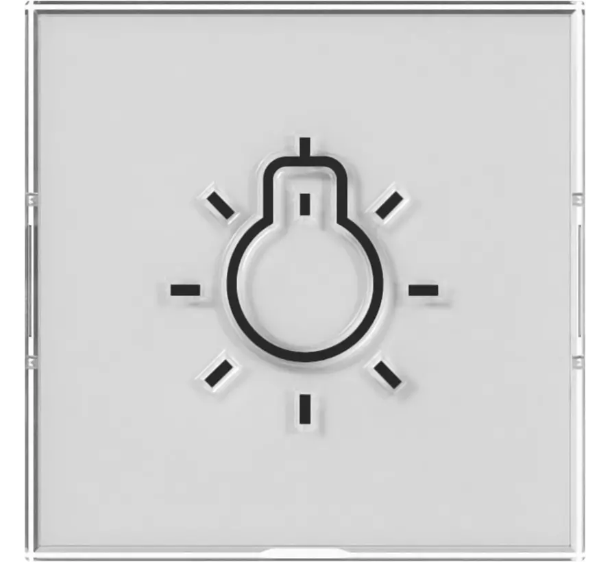 Gira 1-voudige schakelwip (kleurneutraal), met groot tekstkader (37 x 47 mm) en voorzien van een groot symbool 'licht' in reliëf. Blanco tekstlabel wordt meegeleverd.