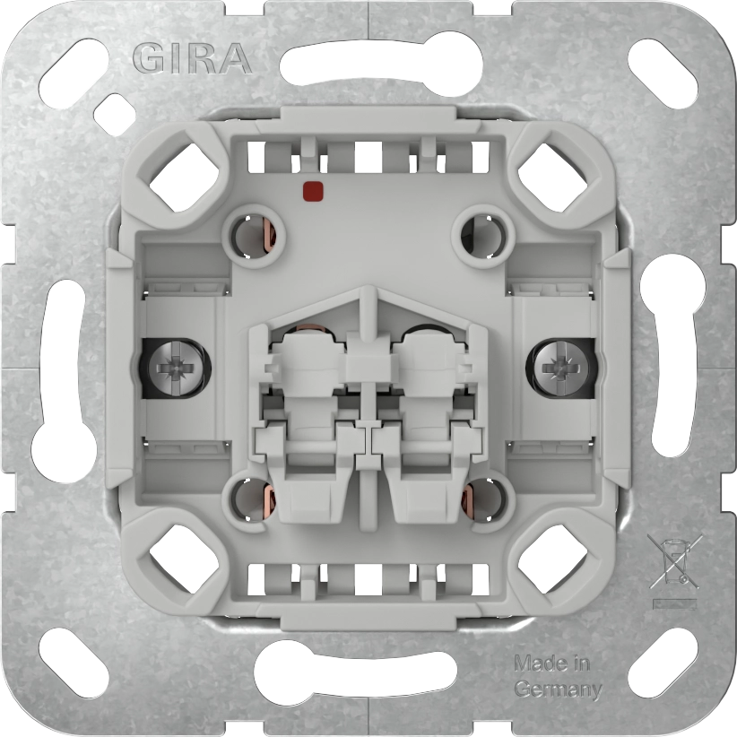 Gira trekschakelaar (1-polig), voor wandmontage. Geschikt voor wisselschakelingen. Met spreidklemmen. Afdekken met een centraalplaat voor trekschakelaar en een afdekraam.