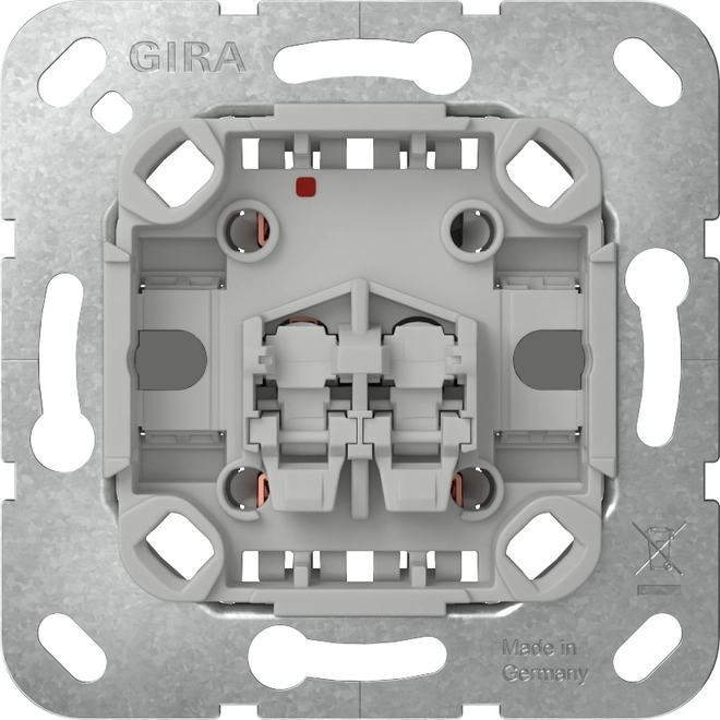 Gira trekschakelaar (1-polig), voor wandmontage. Geschikt voor wisselschakelingen. Zonder spreidklemmen. Afdekken met een centraalplaat voor trekschakelaar en een afdekraam.