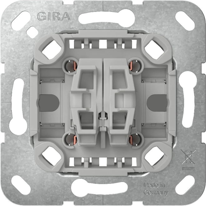 Gira drukvlakschakelaar wissel-wissel, geschikt voor het bedienen van 2 lichtpunten vanaf één of meerdere locaties. Zonder spreidklemmen. Afdekken met dubbele (rechtstaande) schakelwip en afdekraam.