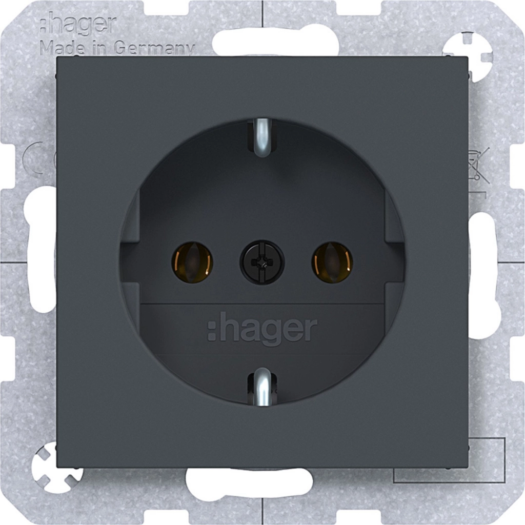 Hager Berker randaarde stopcontact, A.1/A.8/C.1/C.8, antraciet mat. Met klauwbevestiging/spreidklemmen. Excl. afdekraam.