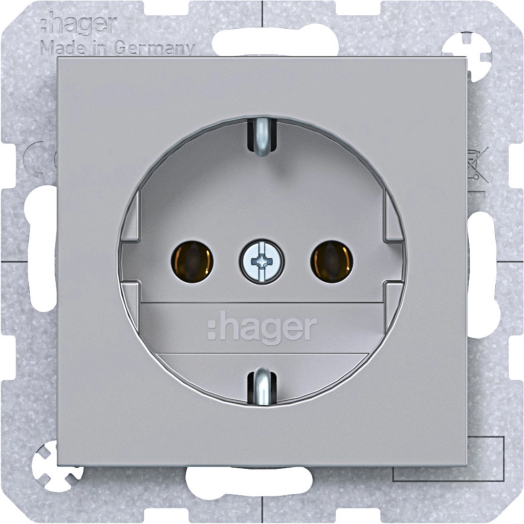 Hager Berker randaarde stopcontact, A.1/A.8/C.1/C.8, titaan mat. Met klauwbevestiging/spreidklemmen. Excl. afdekraam.