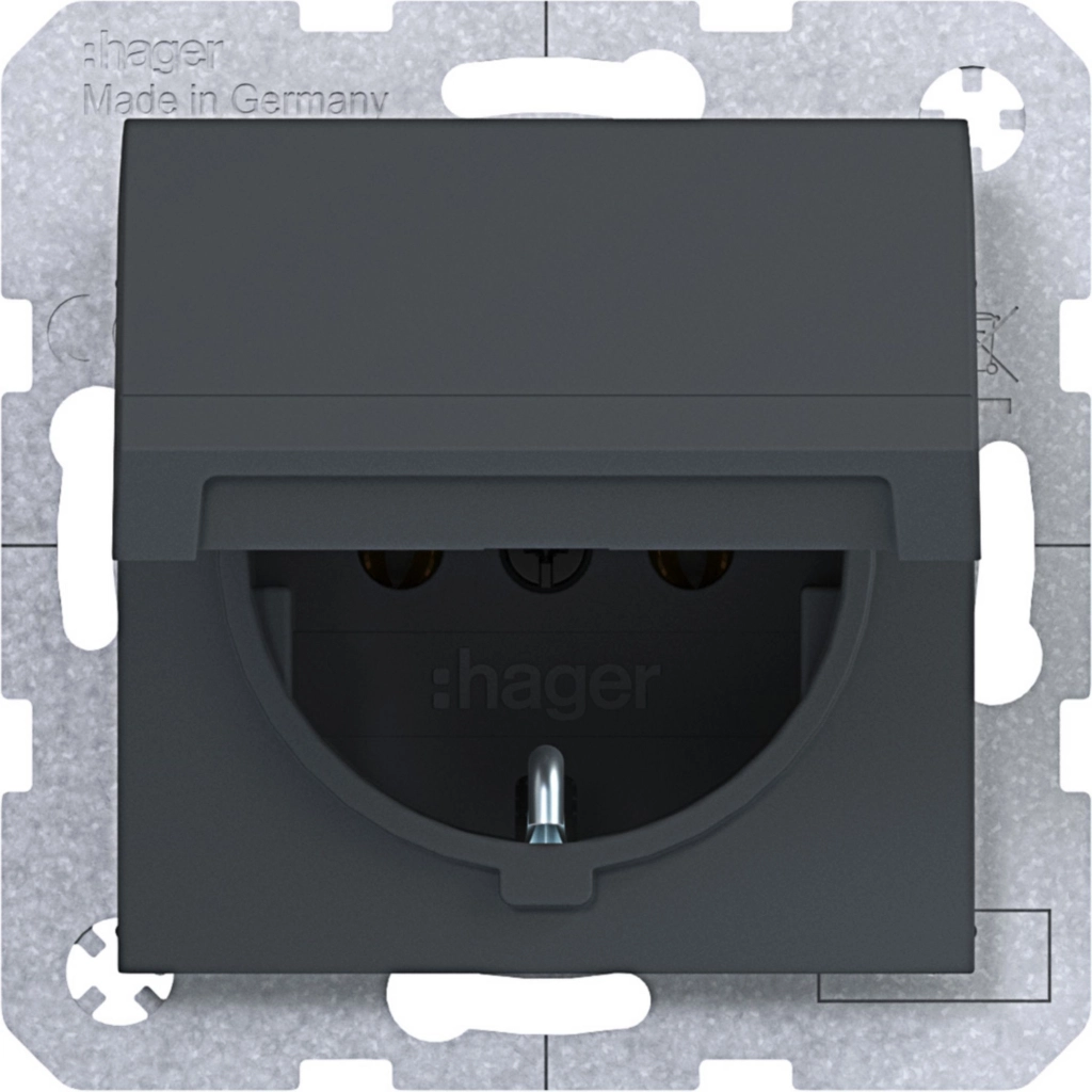 Hager Berker randaarde stopcontact met klapdeksel, A.1/A.8/C.1/C.8, antraciet mat. Met klauwbevestiging/spreidklemmen. Excl. afdekraam.