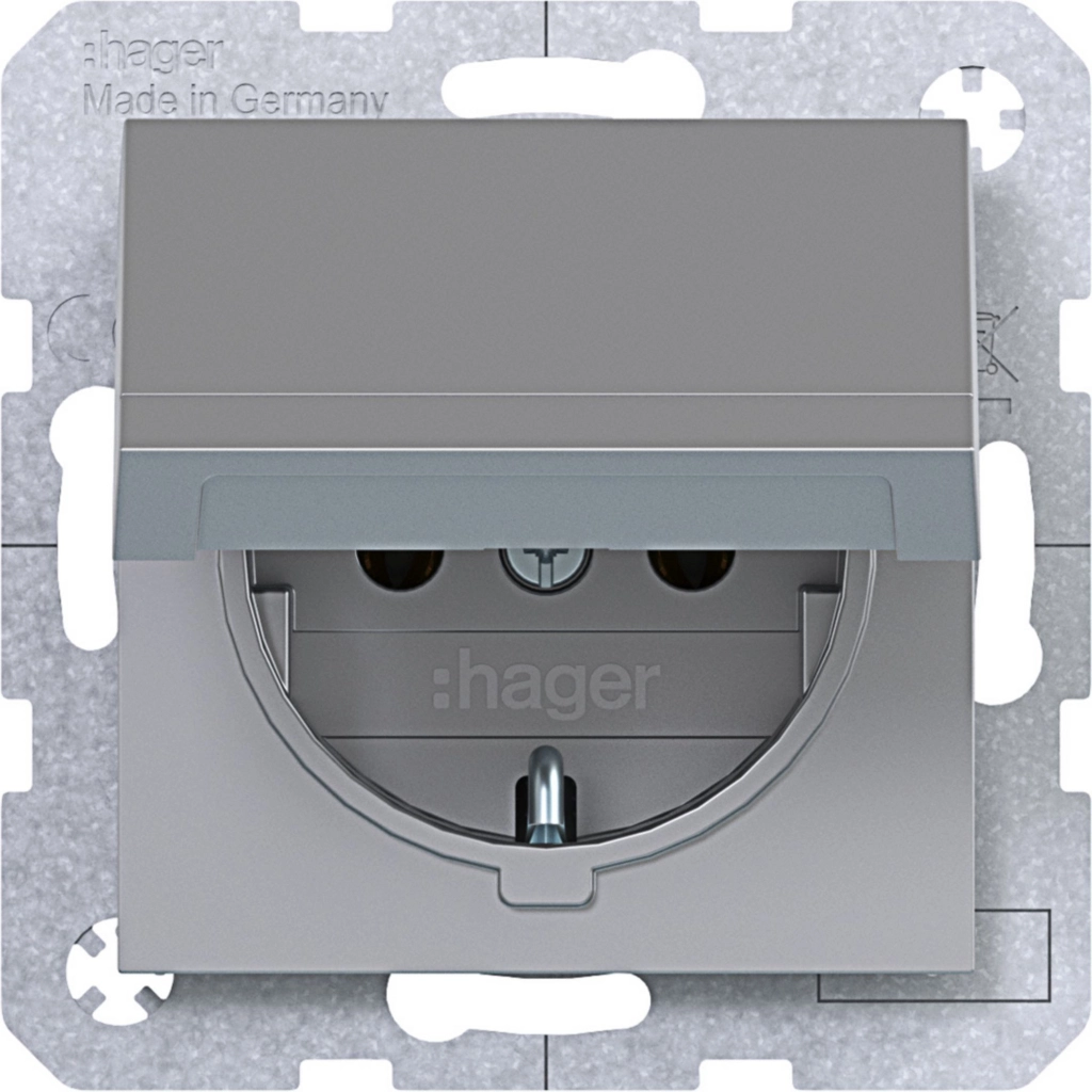 Hager Berker randaarde stopcontact met klapdeksel, A.1/A.8/C.1/C.8, titaan mat. Met klauwbevestiging/spreidklemmen. Excl. afdekraam.
