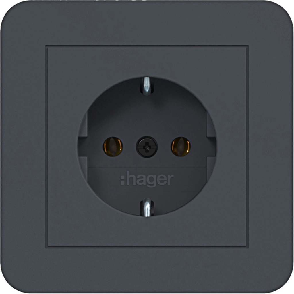 Hager Berker randaarde stopcontact met volle afdekplaat, voor afzonderlijke montage. Met klauwbevestiging/spreidklemmen. Incl. afdekraam C.1, antraciet mat.