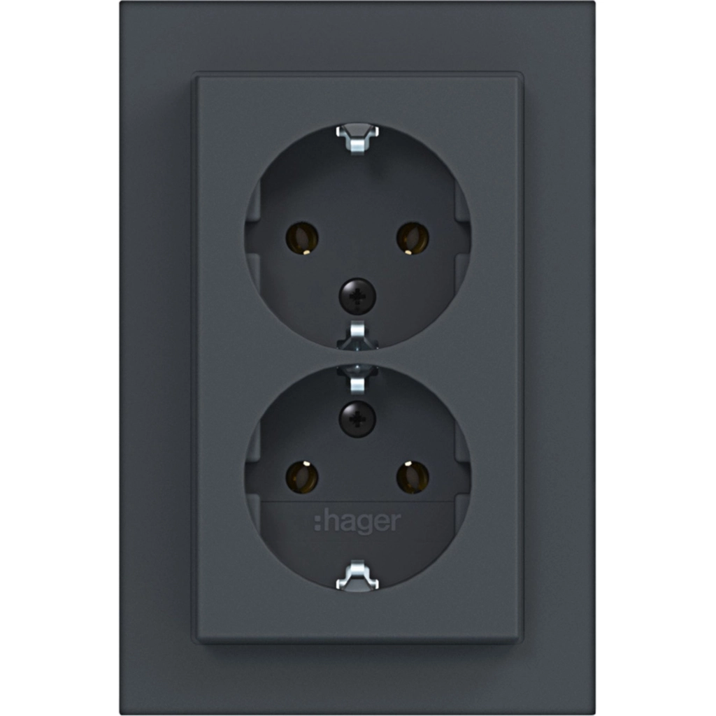 Hager Berker dubbel stopcontact met randaarde. Met volle afdekplaat, A.1, antraciet mat. Met klauwbevestiging/spreidklemmen. Geschikt voor enkele inbouwdoos.