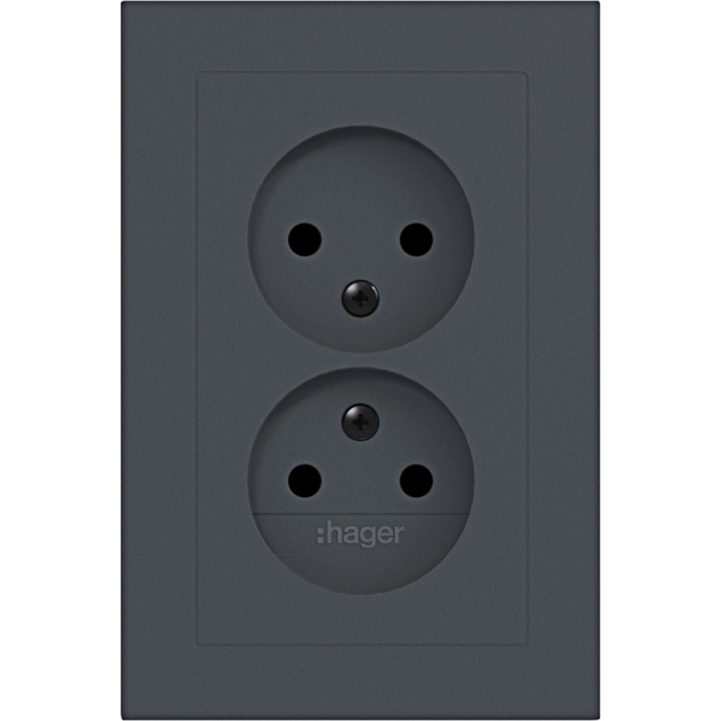 Hager Berker dubbel stopcontact zonder randaarde met verhoogde aanraakbeveiliging. Met volle afdekplaat, A.1, antraciet mat. Geschikt voor enkele inbouwdoos.