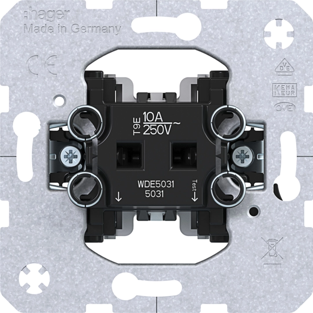 Hager Berker standaard enkelvoudige pulsdrukker met maakcontact, 10 A Met klauwbevestiging (spreidklemmen). Excl. schakelwip en afdekraam.