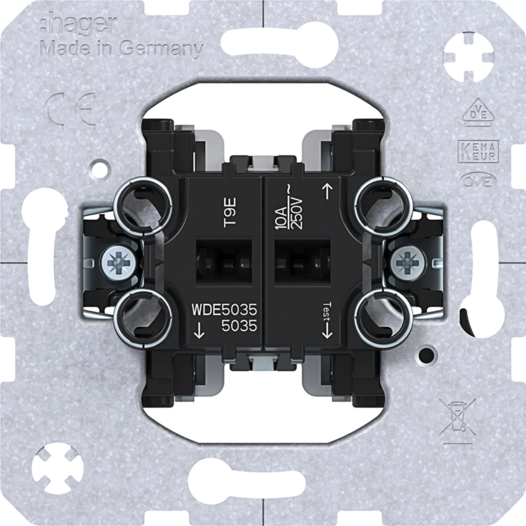 Hager Berker dubbele pulsdrukker met twee maakcontacten en een gemeenschappelijke ingang, 10 A. Met klauwbevestiging (spreidklemmen). Excl. schakelwip en afdekraam.