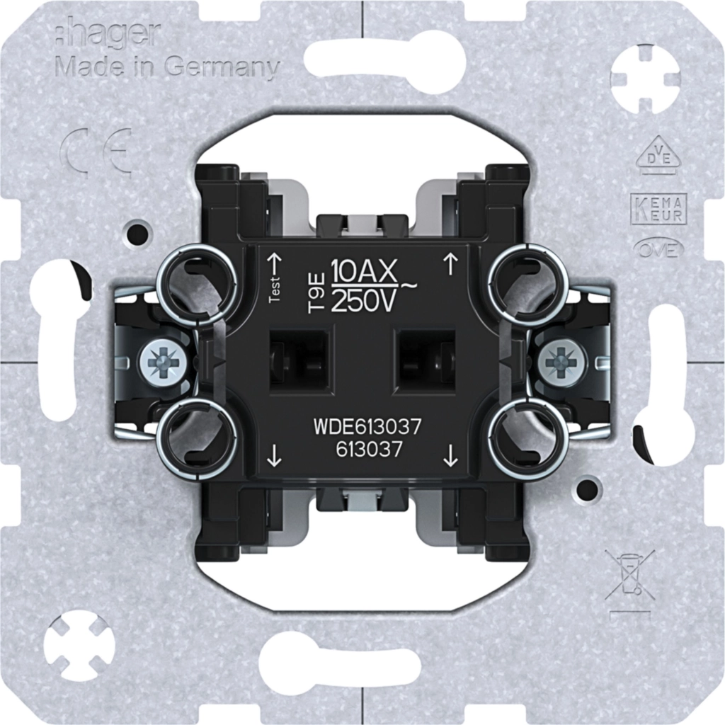Hager Berker kruisschakelaar voor het bedienen van een lamp vanaf drie of meer plaatsen (in combinatie met twee wisselschakelaars), 10 A. Zonder klauwbevestiging (spreidklemmen). Excl. schakelwip en afdekraam.