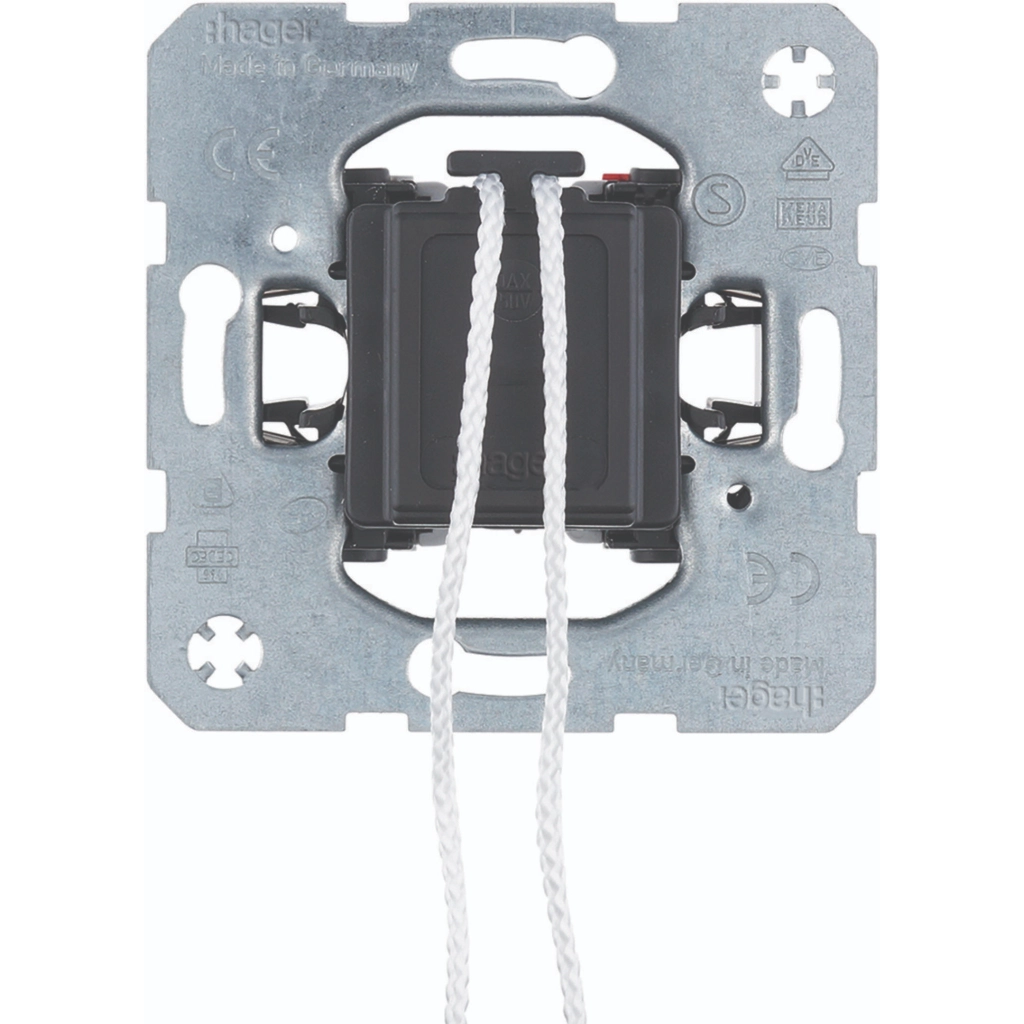 Hager Berker standaard 1-polige trek-wisselschakelaar, geschikt voor wisselschakeling (hotelschakeling), 10 A. Zonder klauwbevestiging (spreidklemmen). Excl. centraalplaat en afdekraam.