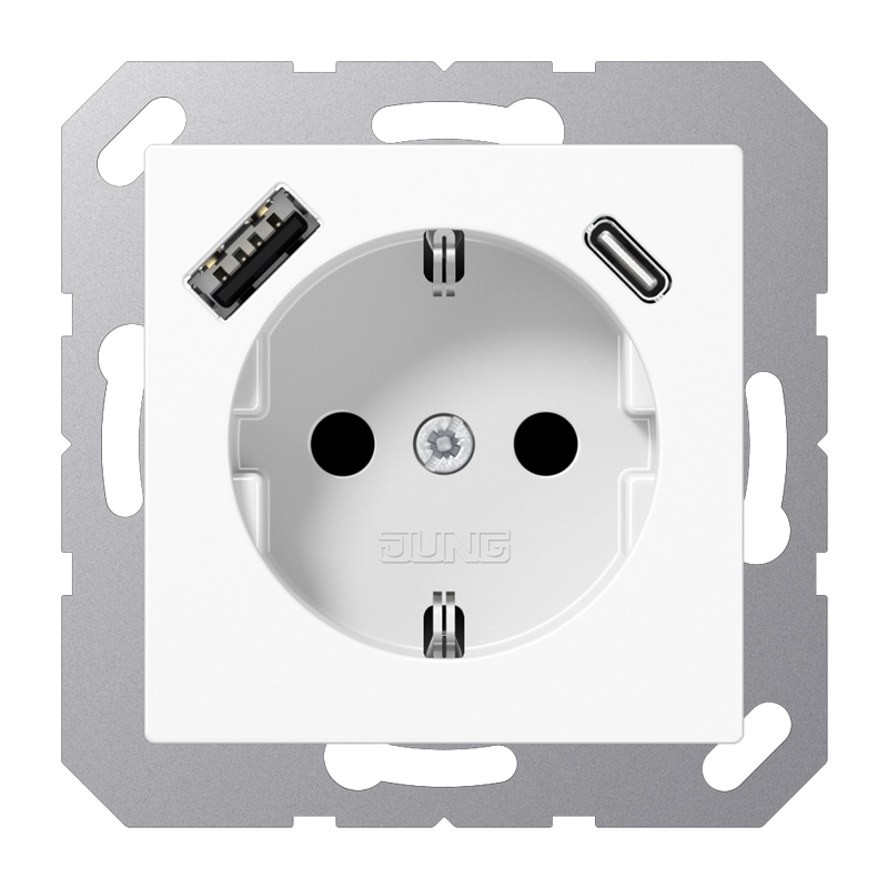 JUNG wandcontactdoos randaarde Safety+ met USB type A en C A-range alpine wit (A 1520-15 CA WW)