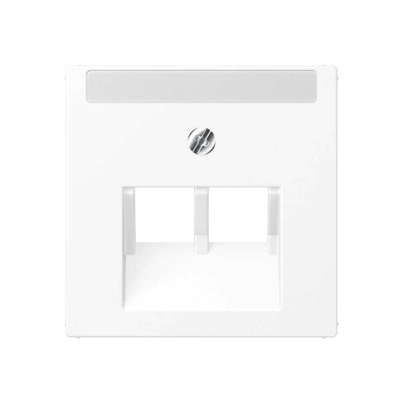 JUNG 2-voudige centraalplaat met tekstvenster voor 2-voudige RJ45 wandcontactdoos, A-range, sneeuwwit mat. Thermoplast (mat gelakt). Excl. binnenwerk en afdekraam.