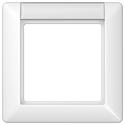 JUNG 1-voudig afdekraam met tekstvenster, voor horizontale en verticale montage, AS 500, alpine wit. Afm.: 80,5 x 80,5 x 10 mm. Duroplast, zeer krasvast en glanzend.