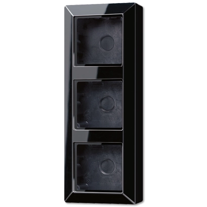 JUNG 3-voudige opbouwbak, voor basiselementen met afdekkingen uit de AS 500/A-range (zie lijst met uitgezonderde artikelen), AS 500, zwart. Afmetingen: 227 x 85 x 47 mm. Duroplast, zeer krasvast en glanzend. Incl. vlamwerende bodemplaat en afdekraam.