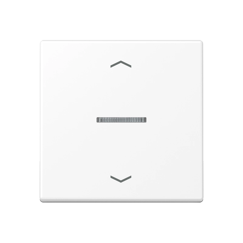 Jung HOME dimmerknop 2-voudig met pijlsymbolen, A-range, alpine wit. Draadloze verbinding met apparaten van het Jung HOME-systeem, in te stellen en te bedienen met de app via Bluetooth. Excl. basiselement.