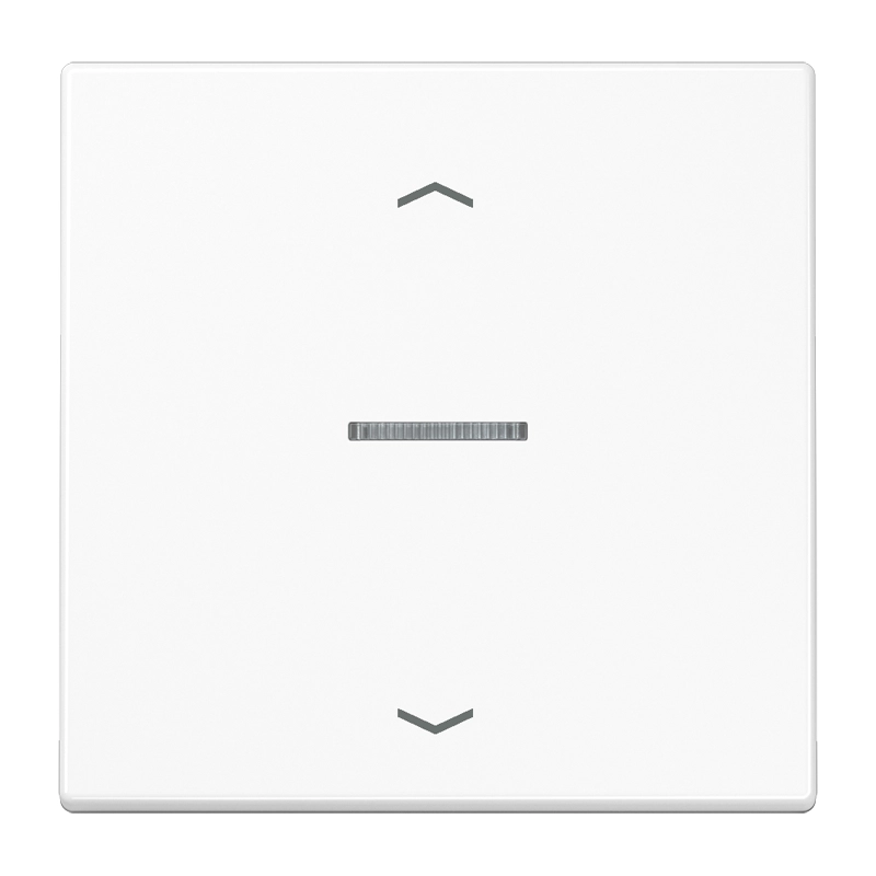 HOME dimmerknop 1-voudig met pijlsymbolen geschikt voor het handmatig of automatisch bedienen van bijvoorbeeld jaloezieën, rolluiken, markiezen, verlichting of ventilatoren. Afhankelijk van het gebruikte basiselement (separaat aan te schaffen). Draadloze verbinding met componenten van het Jung HOME-systeem. Inbedrijfname en bediening via Jung HOME-app op mobiele apparaten (smartphone of tablet) met Bluetooth.