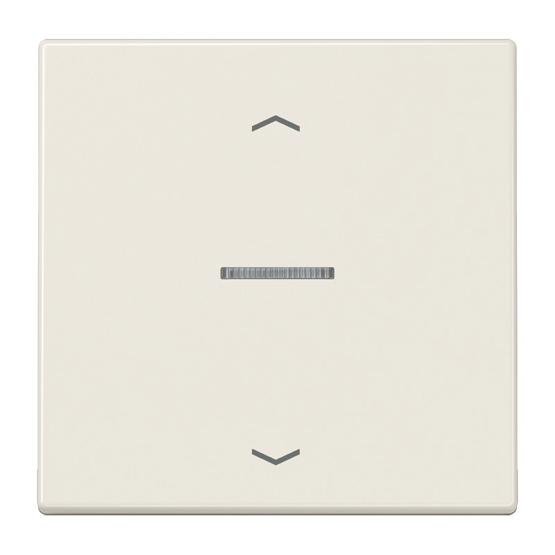 HOME dimmerknop 1-voudig met pijlsymbolen geschikt voor het handmatig of automatisch bedienen van bijvoorbeeld jaloezieën, rolluiken, markiezen, verlichting of ventilatoren. Afhankelijk van het gebruikte basiselement (separaat aan te schaffen). Draadloze verbinding met componenten van het Jung HOME-systeem. Inbedrijfname en bediening via Jung HOME-app op mobiele apparaten (smartphone of tablet) met Bluetooth.