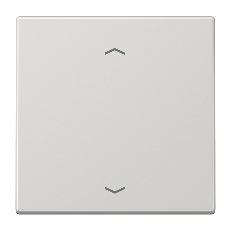 JUNG 2-kanaals wandzender met pijlsymbolen zonder netvoeding of batterijen. LS 990, lichtgrijs. Stuurt schakel-, dim- of jaloeziecommando’s naar EnOcean-ontvangers. Thermoplast (hoogglans). Excl. afdekraam.